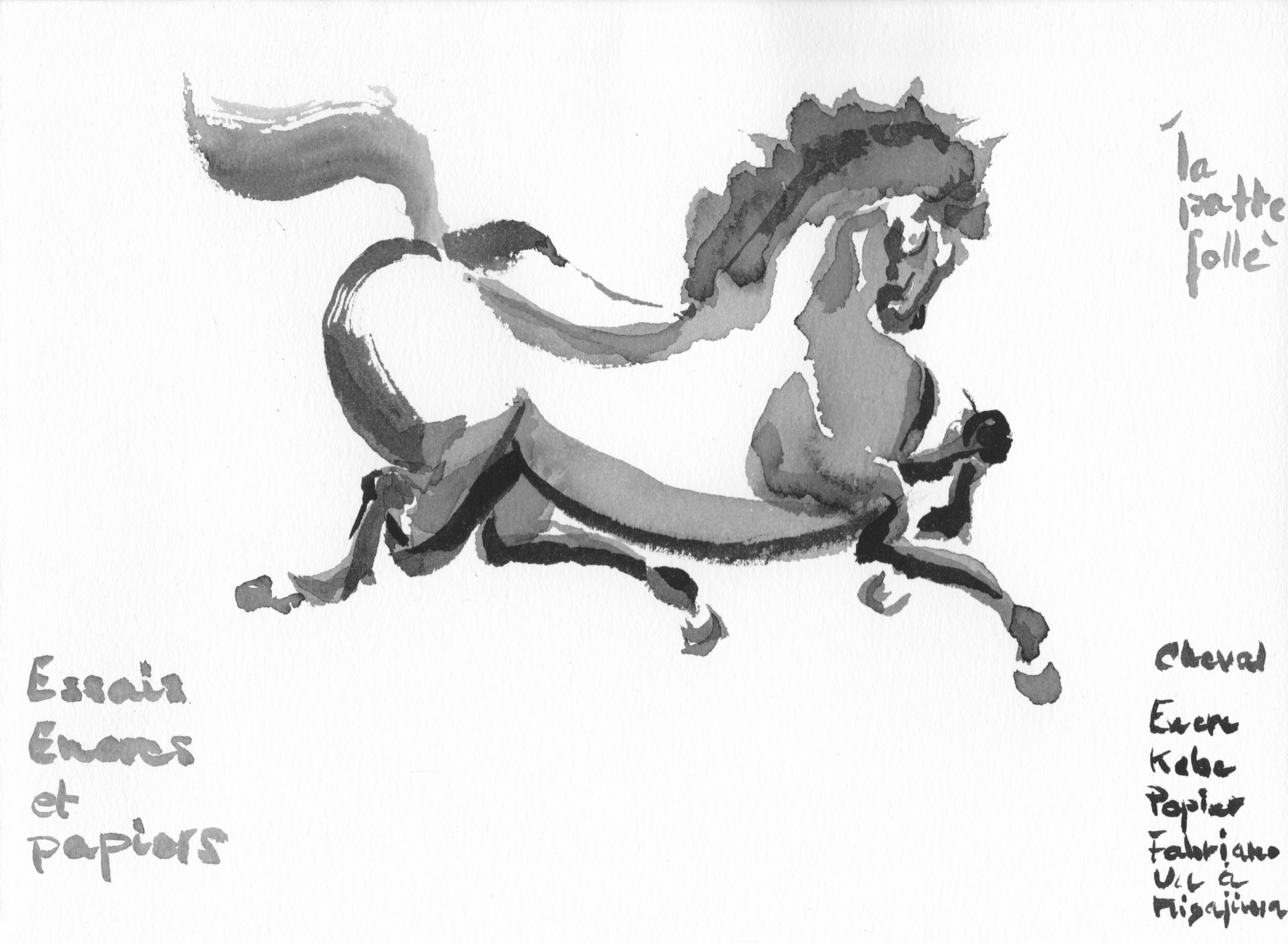 De retour, j’ai donc cherché de ci de là dans mes réserves et testé plusieurs qualités de papier jusqu’à en trouver un qui accepte l’humidité de l’encre, divers degrés de dilution à l’eau…Et les lavis sur base mouillée. Tout ça sans avoir nécessairement à tendre mes surfaces au préalable.