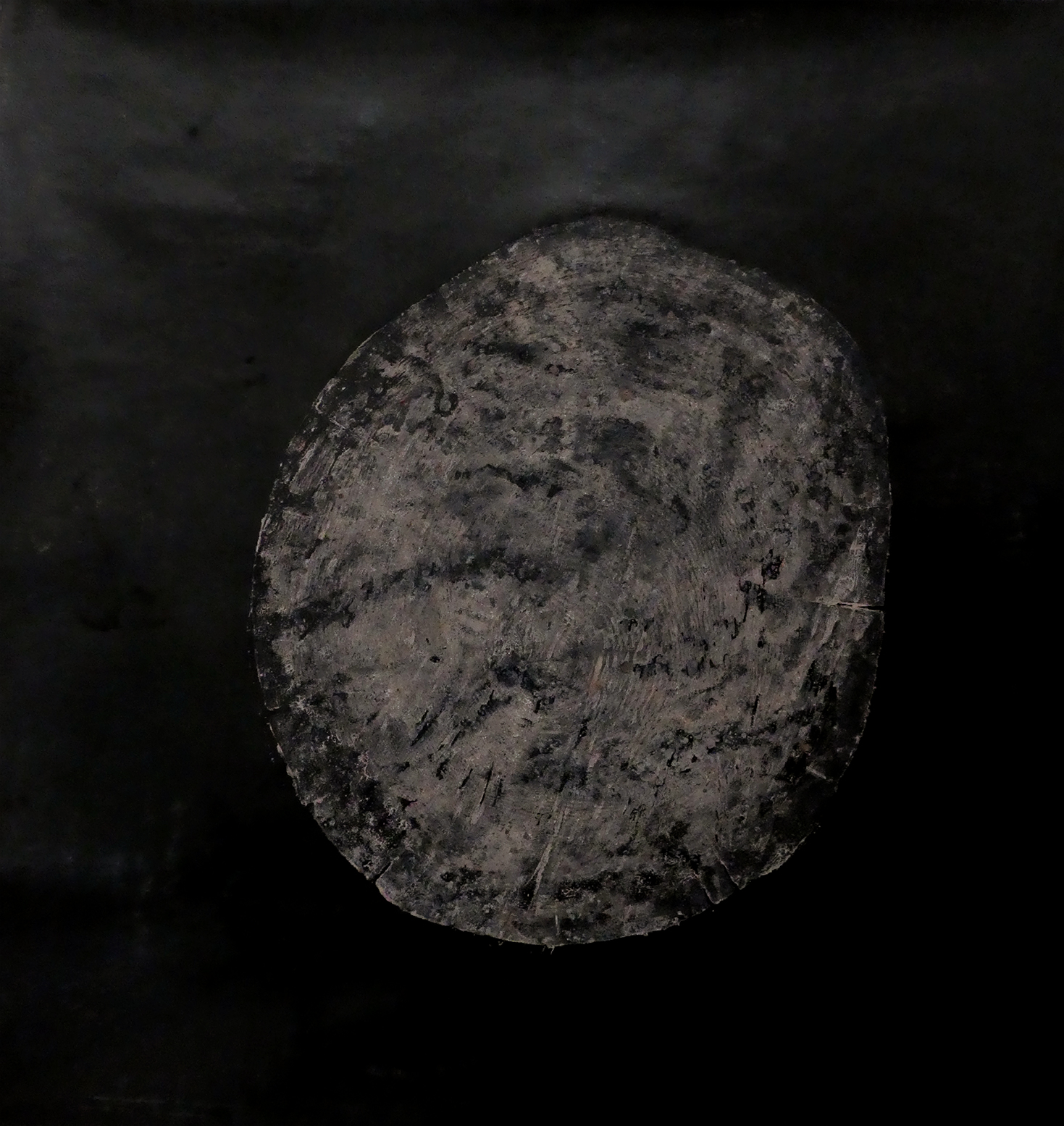 Un dialogue s’instaure avec ces quelques morceaux de bois, et gagne en profondeur à chaque prise d’empreinte. Le papier qui me sert de support et qui fut arbre dans une autre vie devient au fil des transformations un tapis profond et infini. Les monotypes qui flottent sur ces surfaces noires, veloutées ou brillantes comme des lames de poignard, semblent des astres éteints ou des planètes inconnues