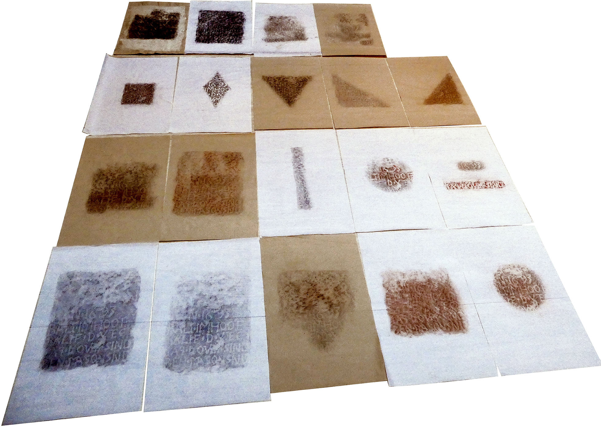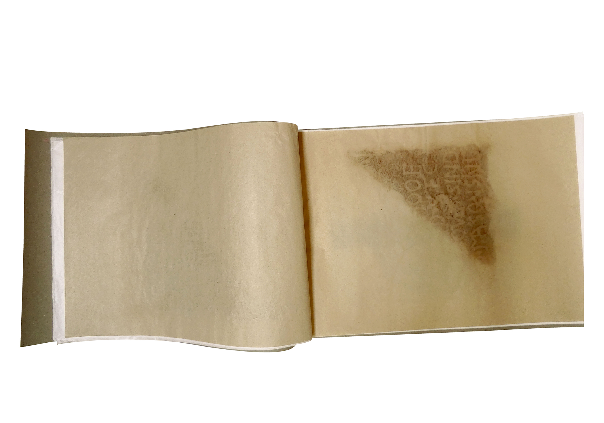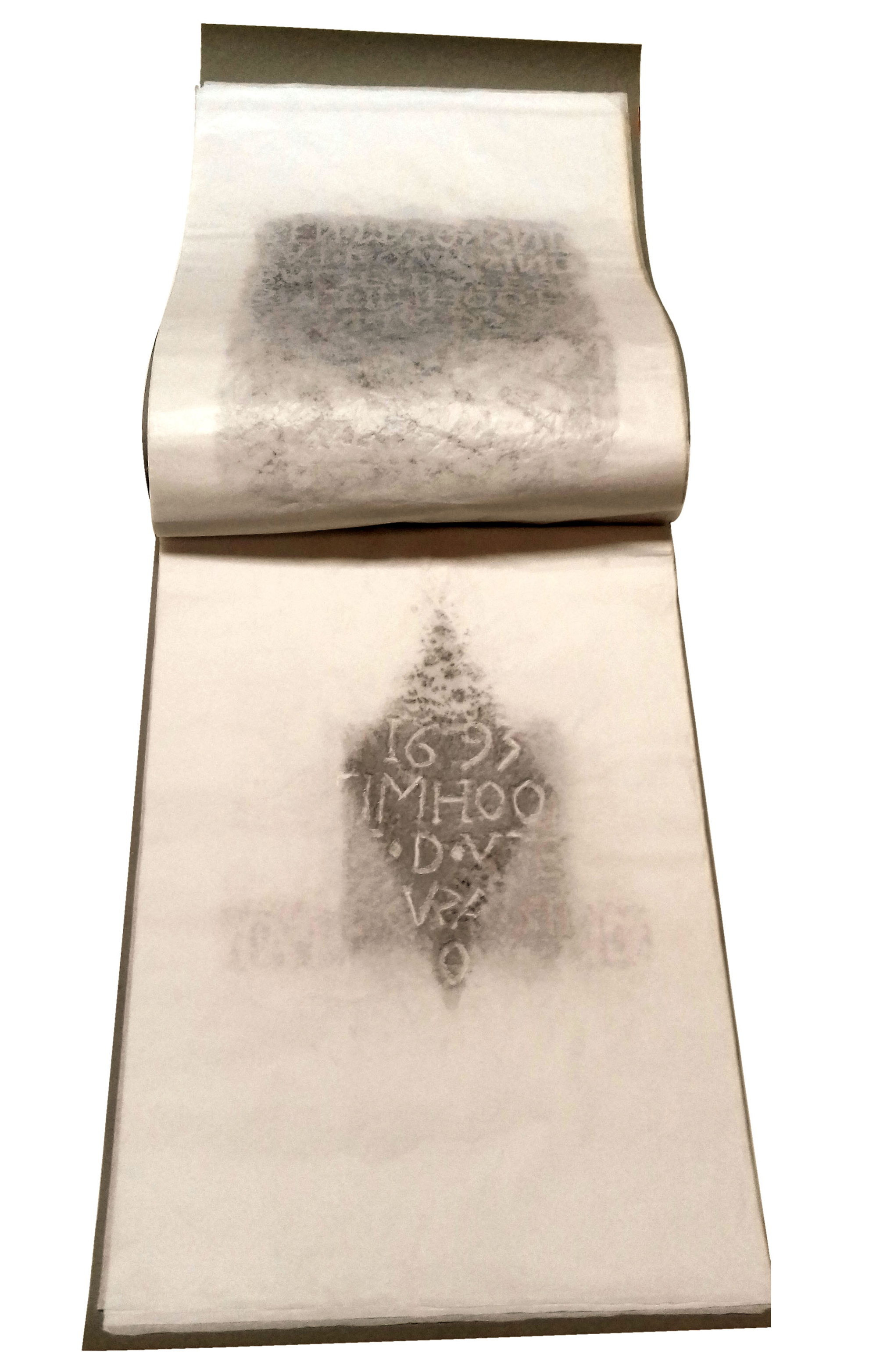 Pour créer mon livre-objet, j’ai réalisé dans un format de 50 par 70 cm, quelques vingt-cinq empreintes que j’ai ensuite reliées en atelier.