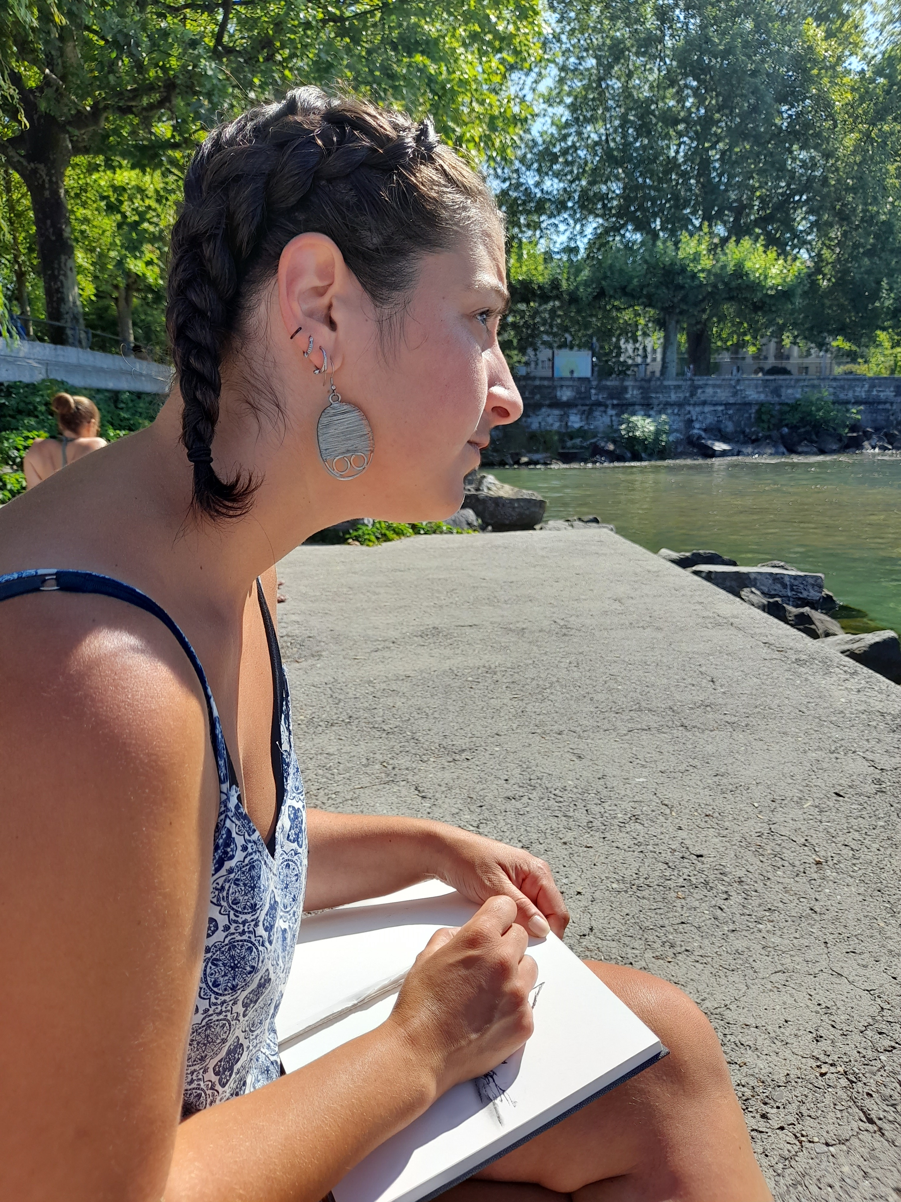 Vendredi, à la recherche du point de vue idéal, Fiamma a développé sa pratique du croquis rapide. Au contraire d’Anne-Catherine, qui a choisi d‘‘aquareller le paysage.