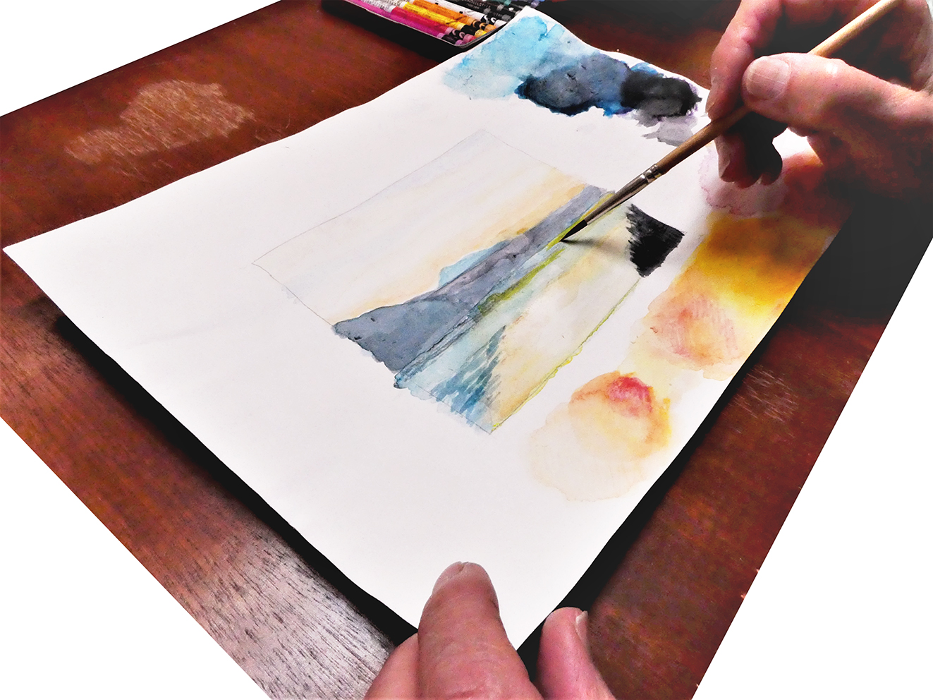 Crayons gris et/ou de couleur. Vous pouvez prendre des crayons aquarellables si vous le souhaitez.
