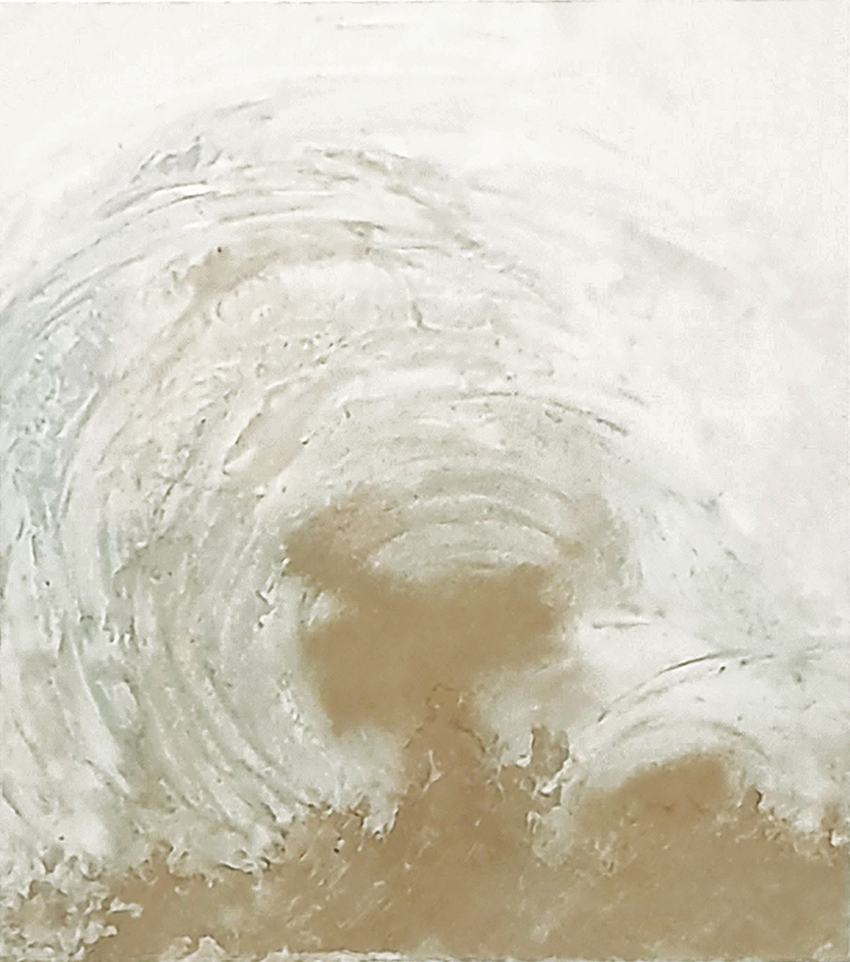 J’ai d’abord travaillé à partir d’une pierre calcaire blanche, assez friable. Moulue au mortier, elle m’a donné une poudre dense, lourde et légère à la fois, compacte et d’un très beau blanc tirant sur l’ivoire. Avec elle, j’ai cherché comment déposer sur la toile cette matière nouvelle et inconnue.