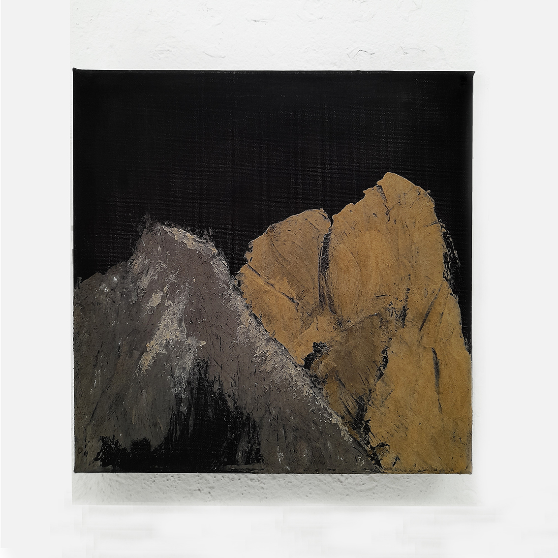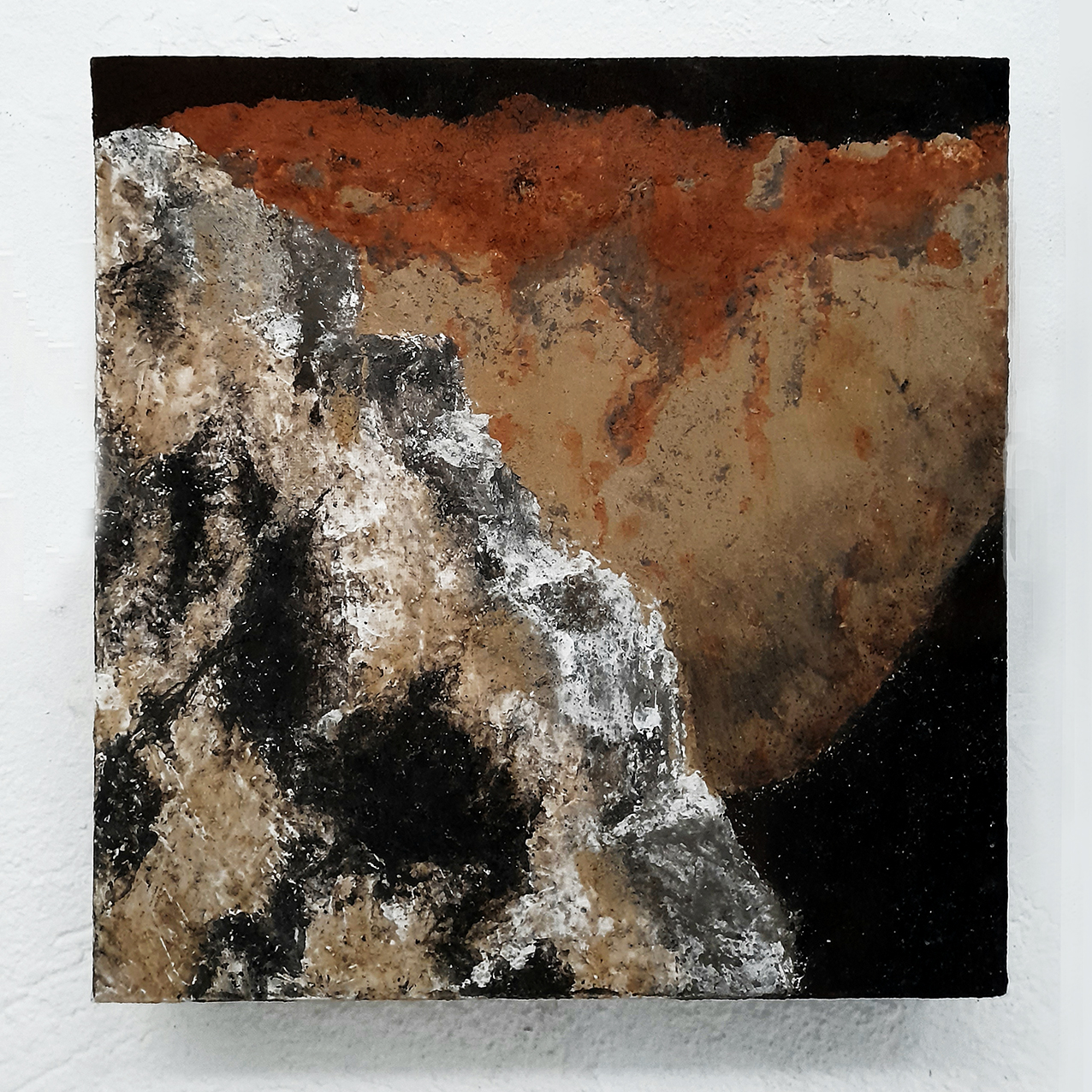 poudres de pierres et noir ciré sur toile de coton