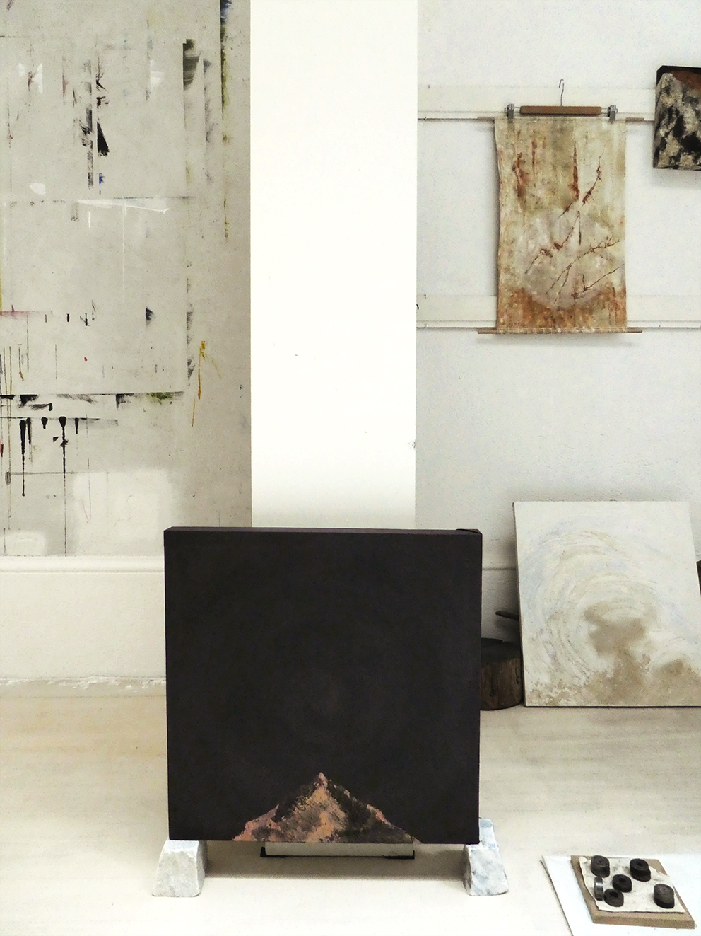 En arrière plan, quelques uns de mes premiers essais de peintures minérales