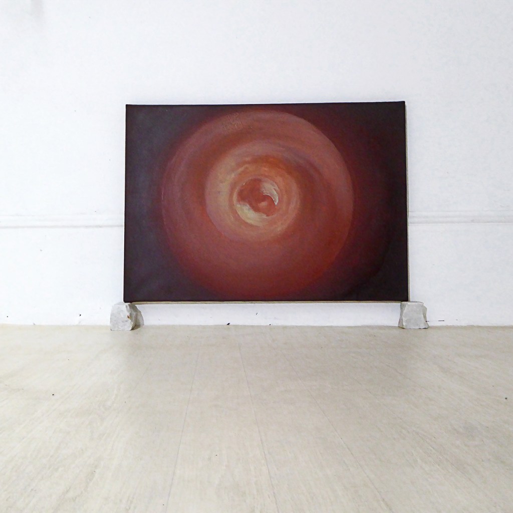 Voici la galaxie recyclée, réalisée en glacis à l’huile sur une toile naïve largement inspirée de Gauguin.