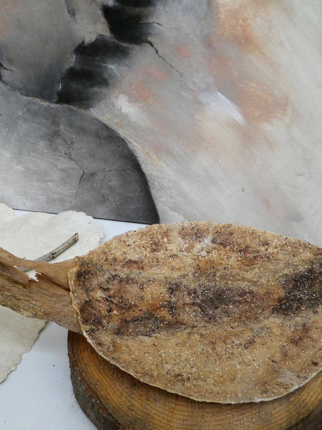 Sur leur gauche, une feuille de carton-pierre armé et texturé 2024 – 2025