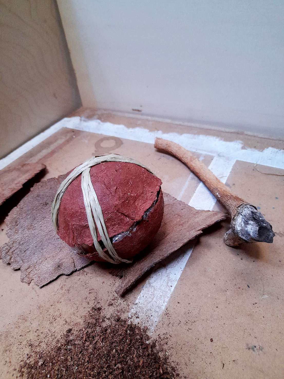 Ce travail est assez long. Il y a la préparation des écorces, l’extraction de la pulpe, la réalisation des mélanges puis le modelage… suivis d’un temps de séchage de plusieurs jours en général.