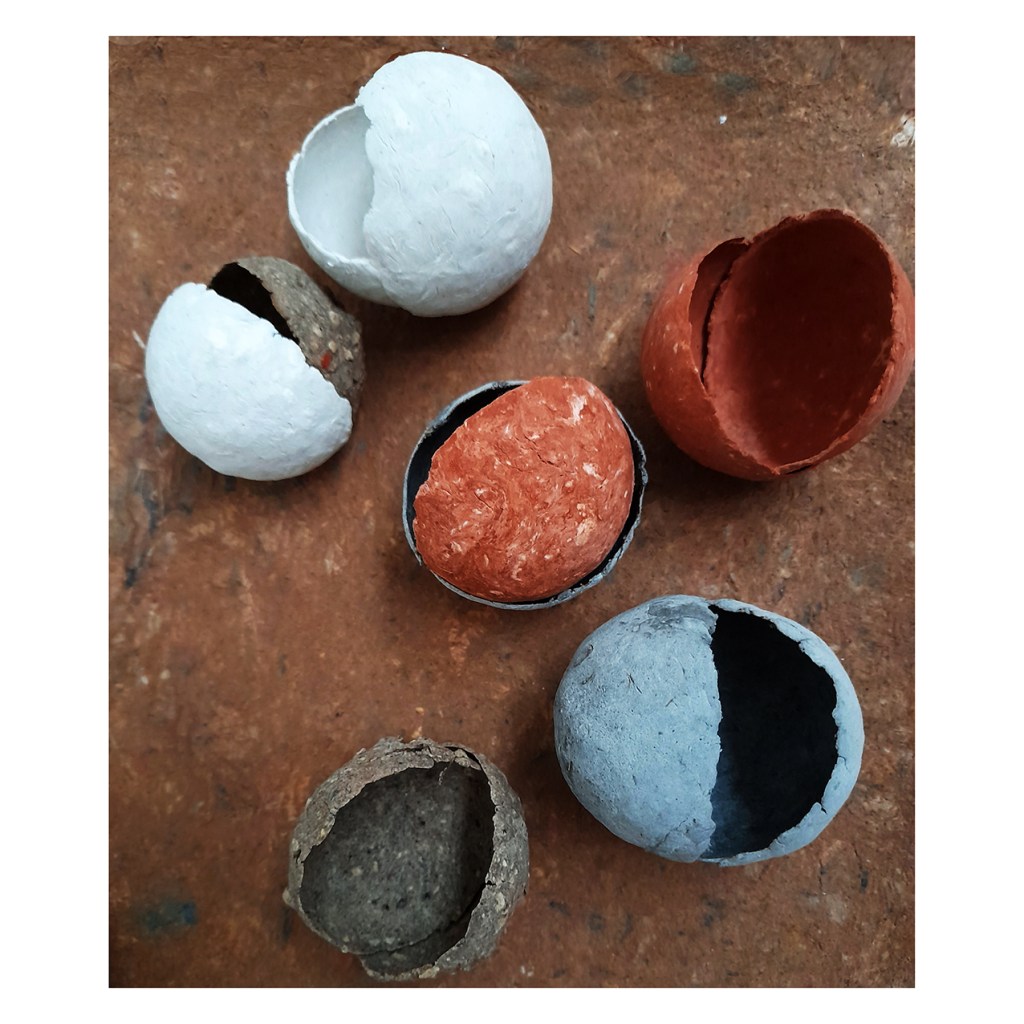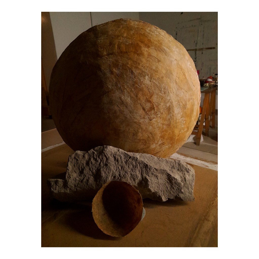 La collective de Visarte Genève se déroule dans trois automates de vente alimentaire. Chaque artiste dispose de un à trois casiers pour y exposer de petits formats. J’y présente mes « gloutons » en papier-terre et pierre